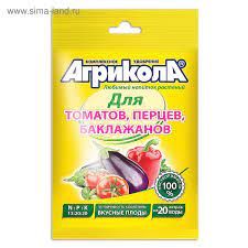 Удобрения включают полный сбалансированный набор макро- и микроэлементов, не содержат хлора и тяжелых металлов. Правильный состав, учитывающий потребности растения в тот или иной период роста, своевременные подкормки удобрениями Агрикола препятствуют образованию нитратов в растениях. Подкормка удобрением Агрикола!3. Для приготовления рабочего раствора 25 г удобрения растворите в 10 л воды и обработайте 10—25 кв.м посевов в зависимости от способа обработки (полив или опрыскивание). В течение вегетации проводятся 4—5 внекорневых подкормок растений. Томат, баклажан: 1-ая внекорневая подкормка проводится через 10—15 суток после высадки рассады. Последующие с интервалом в 15 дней. Перец: 1ая внекорневая подкормка проводится через неделю после высадки рассады. Последующие — при образовании завязи.
