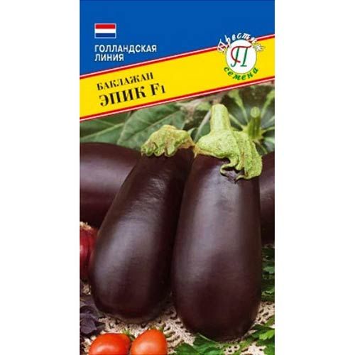 Баклажан Эпик F1 – урожайный гибрид голландской селекции рекомендован для возделывания в открытом грунте в южных районах, но сорт показал хорошую продуктивность при возделывании и в других районах. Преимущество сорта – раннее созревание, потребуется от 60-62 дней (при рассадном способе выращивания) для получения высокого урожая баклажанов. Плоды крепкие, удлиненные, каплевидной формы. Кожица блестящая темно-фиолетовая. В белой мякоти присутствует незначительное количество семян, нет горечи.