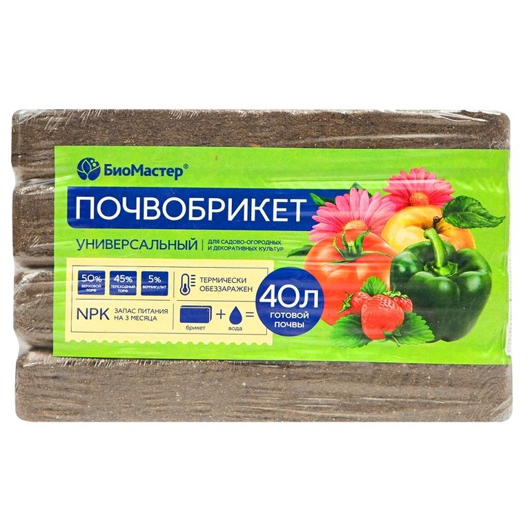 Экологически чистая прессованная почва, изготовленная на основе высококачественных торфов с добавлением питательных веществ, идеально подходит для всех видов растений, а также для улучшения почвы на грядках в саду и теплицах. Почва однородная, мягкая, с высокой влагоемкостью и воздухо-проницаем остью, отличными дренажными свойствами. Почва содержит стартовый запас питательных элементов для роста здоровых, крепких растений.