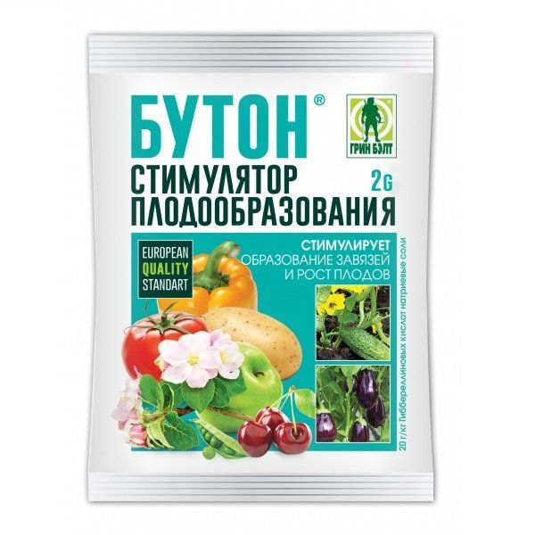 Увеличивает количество завязей и сохраняет их от опадания, ускоряет плодообразование.