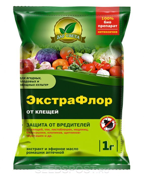 «ЭкстраФлор» — это вытяжка экстрактов из натуральных растений, которая защищает овощные и плодово-ягодные культуры от клещей и большинства насекомых-вредителей, грибковых заболеваний, а также стимулирует рост и развитие саженцев.