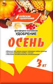 Фосфорно-калийное удобрение Осень содержит кальций, магний и бор. Предназначено для внесения под перекопку осенью или весной (с азотными удобрениями), а также для подкормок выращиваемых культур в период плодоношения и конце вегетации.