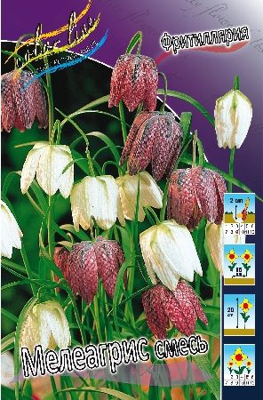 Фритиллярия (рябчик) Мелеагрис смесь – это очаровательное зрелище белых и коричневых цветков-колокольчиков «шахматного» рисунка. Время цветения приходится на май, растение образует поникающие цветки. Цветки одиночные, колокольчатые, в диаметре до 3 см. Продолжительность цветения 3 недели.
