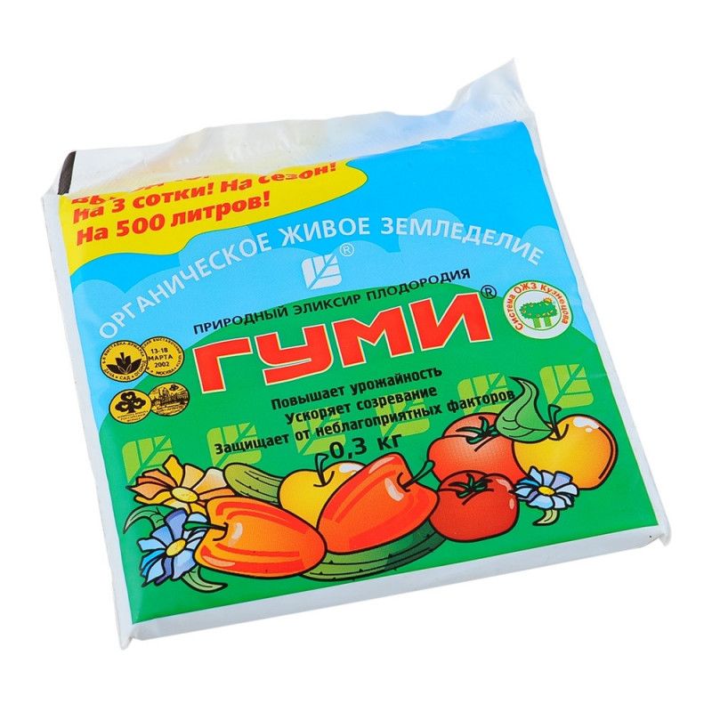 ГУМИ-30 – УНИВЕРСАЛ (паста) - природный универсальный гумусный эликсир плодородия, витамин роста, мощный природный мягкий антистрессовый препарат. Один из самых концентрированных препаратов: 20%, 30%, и 90% (концентрация выше обычных в 10-100 раз). Содержит более 80 микро-, макро элементов и минералов. Помогает растению при пересадке, бутонизации, цветении, плодоношении, при заморозках, засухе и других неблагоприятных погодных условиях, химических и радиационных отравлениях, при засоленности, болезнях, поражении насекомыми - вредителями и других стрессах