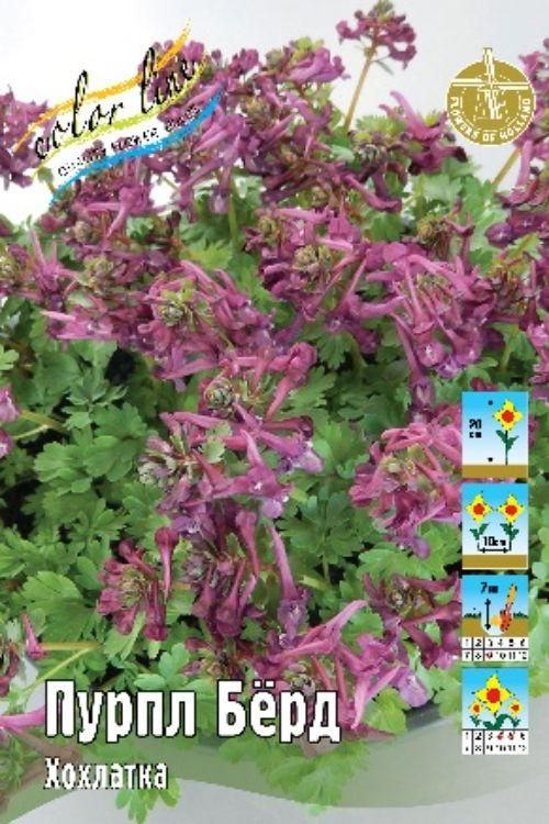 Хохлатка Пурпл Бёрд. Растение вырастает в высоту до 15-20 см. Цветет на второй год после посадки в середине — конце весны. Цветочки обладают приятным ароматом, фиолетовые, собираются в крупные, цилиндрические соцветия. Высаживать луковицы рекомендуют в рыхлую, богатую органикой почву. Место выбирают полузатененное.