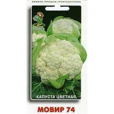 Внешне цветная капуста Мовир 74 выглядит как компактное растение, достигающее в высоту 50-70 см. В диаметре культура не превышает 60-75 см. Листья округлые с гладкой поверхностью и восковым налетом. Края у них слегка изогнуты. Окрас листьев ярко-зеленый, но с сероватым матовым оттенком.