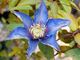 Клематис 'Блю Ривер'- относится к группе Интегрифолиа. Цветки с пурпурными лепестками при открытии и со временем светлеющими до нежно голубых. Цветки звездообразные. Пыльники белые. Диаметр цветка от 6 до 8 см, имеет 6 чашелистиков. Продолжительное и обильное цветение на побегах текущего года с июня по сентябрь.