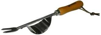 Корнеудалитель – небольшой садово-огородный инструмент узкой специализации. Используется для окучивания, подреза и удаления сорняков из почвы вместе с корневищем, рыхления и аэрации почвы при уходе за растениями на небольших клумбах и грядках. Конструкция состоит из длинного стального стержня с раздвоенным ножом на конце и удобного пластикового черенка. Подходит для работы на сложном участке, где корни культурных растений и сорняков переплетены.