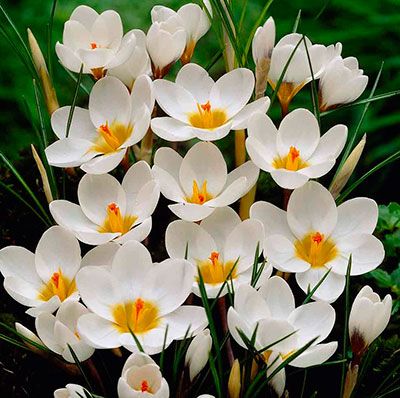 Крокус ботанический (шафран) "Ард Шенк" - раннецветущий сорт с белоснежными бутонами и с солнечным пятном в самом сердце цветка. Аромат легкий. Узкие, темно-зеленые листья продолжают еще долго расти, сохраняя свою декоративность на продолжительности всего вегетационного периода.