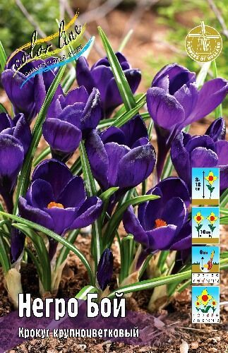 Описание (Крокус Negro Boy) Темно-фиолетовые с пурпурно-черным основанием лепестки соединены в один цветок с ярко-желтыми тычинками. В высоту они достигают 10 - 15 см и отлично смотрятся поляной или на альпийской горке. Цветут в марте - апреле.
