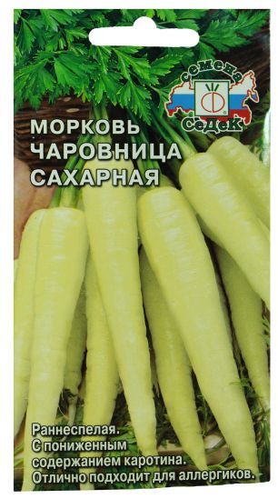 Раннеспелый (от всходов до технической спелости 70-90 дней) сорт моркови. Корнеплоды крупные конические, заостренные, выровненные, длиной 20-25 см, необычного светящегося кремово-белого цвета, с тонкой кожицей. Мякоть и сердцевина белые, плотные, ароматные, сладкие. Имеет повышенное содержание калия, благоприятно влияющего на работу сердца, сосудов и почек. Содержание каротина меньше, чем в корнеплодах с оранжевой кожурой, поэтому рекомендуется для диетического и детского питания. Используется в свежем и переработанном виде. По вкусовым качествам: сладости, сочности и аромату превосходит «стандартную» морковь.