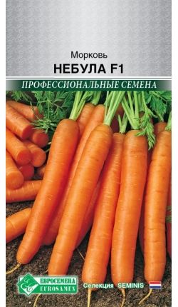 «Небула» - среднепоздний, высокоурожайный гибрид (125-135 дней), нантского типа. Корнеплоды высокой однородности, цилиндрической формы, с тупым носиком, длиной 18- 20см, диаметром 2-3 см, тёмно-оранжевого цвета, с отличным вкусом и ароматом.