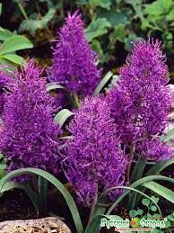Этот своеобразный сорт родственен видам мускари, растущим в Средиземноморском регионе. То, что мы принимаем за цветки, когда смотрим на Мускари комозум, на самом деле не цветки (они появляются позже, в мае-июне), а сильно разветвленные цветоносы лилового цвета.