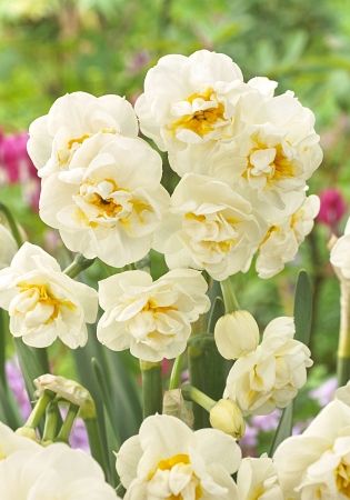 Относится к группе махровые многоцветковые. Высота растения 45-60 см. Цветок молочно- белый с оранжевым центром. На цветоносе до пяти махровых цветков. Диаметр цветка 6-7 см. Посадка - август - начало сентября. Глубина посадки 15-20 см, на расстоянии 10-12 см друг от друга. Цветение начинается с середины мая. Средне ранний срок цветения. К почве особых требований нет, но при условии что хорошо дренирована. Расположение для посадки - солнечные места или полутень. Нарцисс широко используется в озеленении, как раннецветущее растение, в клумбах, рабатках, группах между кустарниками, отдельными пятнами.