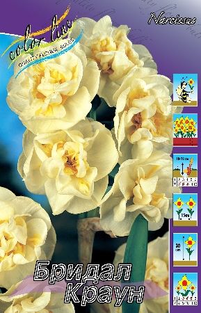 Нарцисс «Бридал Краун» - великолепный махровый сорт луковичного многолетника. Растение отличается высотой от 45 до 50 см. Цветет очень изящными и нежными цветка