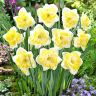 Кружевная и объемная форма бутона Принтал имеет снежный белый цвет, а махровая рассеченная корона – ярко-желтая со светлой серединкой. Как и другие представители серии нарциссов Сплит Корона, сорт Принтал имеет более ранний срок цветения – пик приходится на апрель, а не на май. Высота цветоноса составляет около 40 см, а диаметр бутона – до 10 см. Нежные бутоны источают легкий, но хорошо ощутимый аромат.