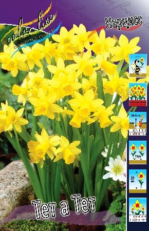 Луковицы нарцисса миниатюрного "Тет а Тет" (Tete a Tete) - это многолетние луковичные растение. Высота 15 см. Цветок миниатюрный ярко-желтый с однотонной, волнистой короной. Размножаются многочисленными дочерними луковичками, которые высаживают на глубину 6-8 см.