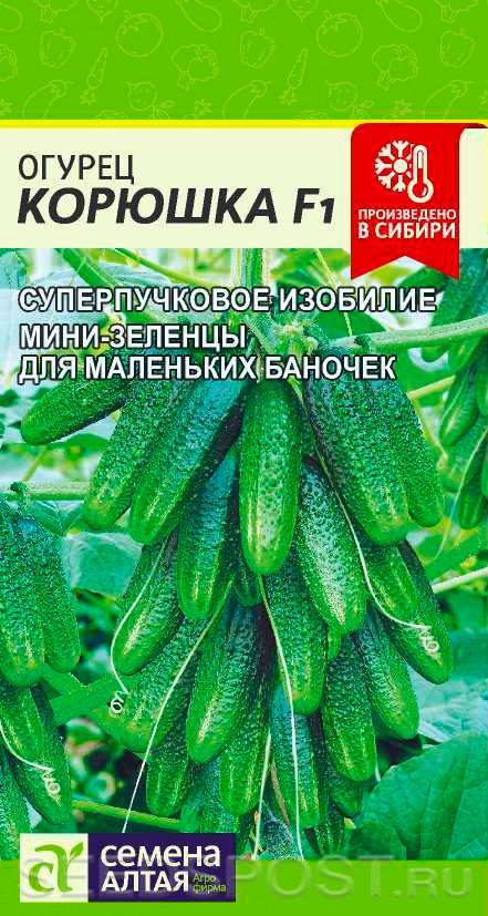 Раннеспелый (от всходов до образования пикулей 37-39 дней) самоопыляемый мелкоплодный гибрид с букетным заложением завязи. Предназначен для производства пикулей (3-5 см), корнишоны (7-9 см) цилиндрические, зеленые с продольными полосами, бугорчатые, белошипые, массой 30-50 г, не перерастают, без горечи. При правильном формировании растения в узлах формируется не менее 3-5 завязей, обеспечивая беспрерывное плодоношение. Зеленцы идеальны для засолки, обладают великолепными вкусовыми качествами - сочные, хрустящие, без горечи. Гибрид устойчив к корневым гнилям, вирусу огуречной мозаики и настоящей мучнистой росе.