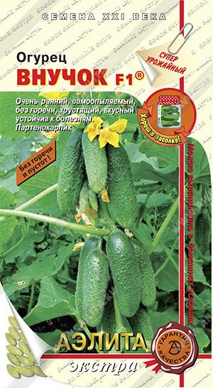 Очень ранний партенокарпический гибрид для открытого грунта, пленочных и стеклянных теплиц, женского типа цветения (ранее в описании: «самоопыляемый», правильный термин: «партенокарпический» - завязывает плоды без опыления). Отличительные свойства: увеличенный период плодоношения, высокая урожайность и товарность плодов. Устойчив к основным болезням огурца: вирусу огуречной мозаики, настоящей мучнистой росе, оливковой пятнистости, корневым гнилям, толерантен к ложной мучнистой росе. Растение среднеплетистое. Зеленцы корнишонного типа с маленькими семенными камерами, мелко-бугорчатые, с белым, плотным опушением, овально-цилиндрической формы, крепкие, хрустящие. Масса зеленца 63-76 г, длина 7,5-9,0 см, соотношение длины к диаметру 3,1:1. Отличается великолепными вкусовыми качествами в свежем виде, при консервировании и засолке. Горечи не содержит.