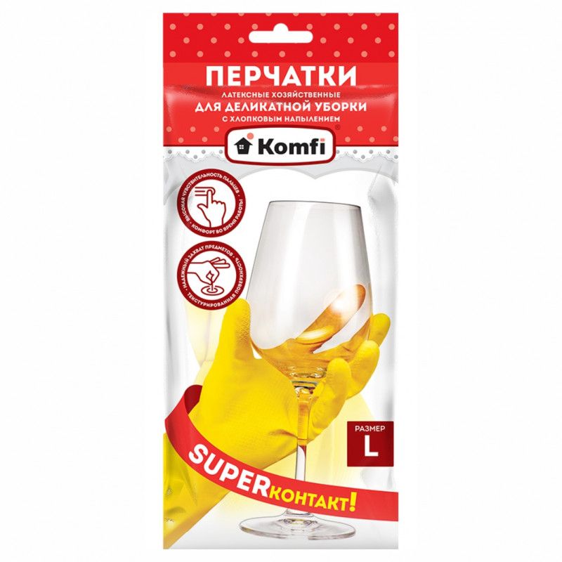 Перчатки Латексные KOMFI д/деликатной уборки L