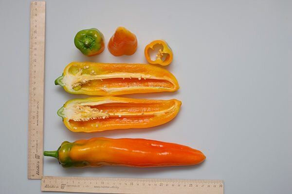 Раннеспелый высокоурожайный гибрид. От всходов до первого сбора плодов проходит 90-100 дней. Плоды очень длинные (до 25 см), с толщиной стенок 4-5 мм и средней масой 200-230 г. Перцы плотные, светло-зеленые в технической спелости и ярко-желтые в биологической, очень сладкие, ароматные, с большим содержанием витамина С. Плоды идеально подходят для свежего потребления, солений, маринадов и приготовления на гриле.