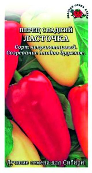 Небольшие толстостенные плоды с деликатным сладковатым вкусом обеспечит нежно любимый российскими огородниками перец Ласточка. Купить семена этого необычного сорта можно, в том числе, для балконного выращивания. Куст компактный, высотой не более 60 см, умеренно раскидистый, вызревает за 110 суток. Перчики утолщены у плодоножки, конусообразно сужаются к кончику, отличаются скромной длиной около 9 см и толстыми сочными стенками в 5 мм. Урожайность напрямую зависит от места выращивания. На открытой грядке и балконе – до 2.5 кг, в теплице, под пленкой – до 4.5 кг. Отличается продолжительным хранением, не повреждается при транспортировке.Кол-во семян : 0,2г.