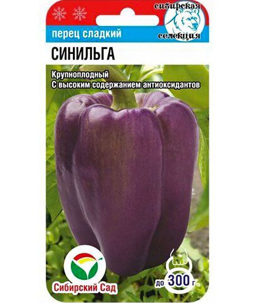 Перец сладкий Синильга "Сибирский сад" — оригинальный крупноплодный сорт сибирской селекции. Может похвастаться необычной сиренево-фиолетовой окраской плодов в стадии технической зрелости, определяемой высоким содержанием антоцианов.