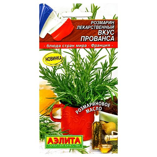 Многолетняя пряно-ароматическая культура с неповторимым сочетанием вкусовых ноток камфоры, лимона и эвкалипта. Особую любовь и популярность розмарин заслужил во Франции, где его широко используют в кулинарии в свежем виде, на его основе заготавливают впрок масло, уксус и специи. В условиях открытого грунта средней полосы сорт возделывается в качестве однолетника. Предпочтение следует отдать рассадному способу выращивания. Лучше в горшечной культуре, так как теплолюбивое растение переносит лишь легкие заморозки. Высота плотного кустика около 30-35 см. Полноценную срезку зелени начинают со 2-го года вегетации, через 60-70 дней от весеннего отрастания.