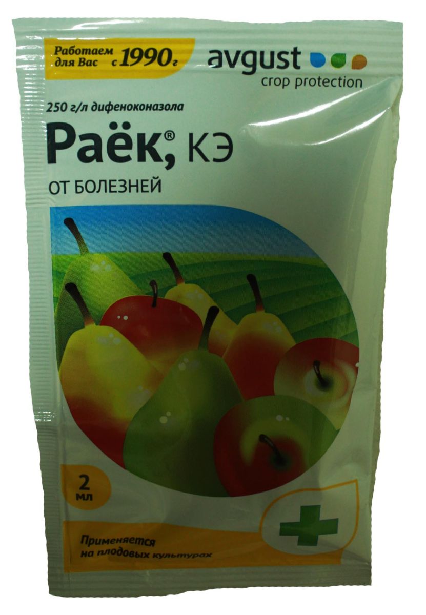 Раек - системный фунгицид с длительным профилактическим и выраженным лечебным действием для защиты яблони, груши, сахарной и кормовой свеклы, картофеля и томатов от комплекса грибковых болезней. Действующее вещество препарата нарушает биосинтез стеринов в организме грибов и приводит к их гибели.