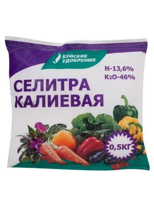Калиевая селитра комплексное удобрение, подойдет для подкормки всех видов культур. Средство обеспечивает здоровый рост и активное развитие растений. Способствует увеличению урожайности и повышает вкусовые качества плодов. Стимулирует устойчивость культур к неблагоприятным условиям.