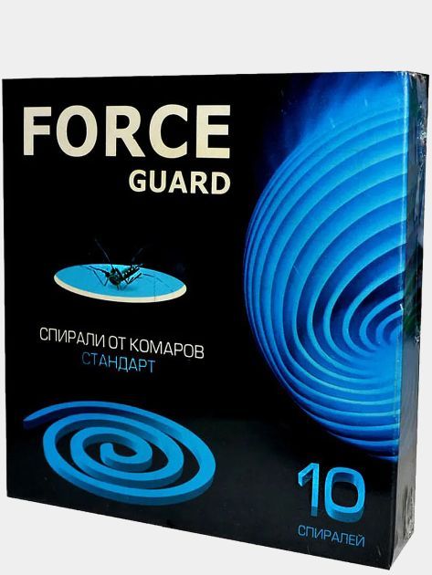 Спирали от комаров Force Guard с двойным эффектом. Тлеющую спираль разместить на невоспламеняющейся поверхности на расстоянии 1м от людей, спираль начинает действовать через 10-15 минут после начала тления, одна спираль рассчитана на 10 часов непрерывной работы, рекомендуется использовать на открытом воздухе или хорошо проветриваемом помещении.