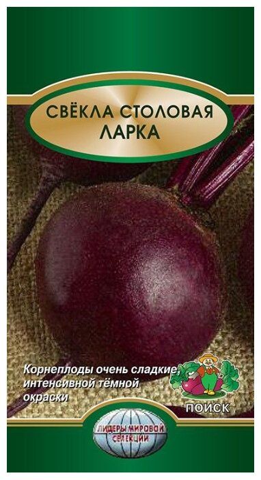 Ларка - среднеспелый сорт свеклы. Сорт свеклы "Ларка" рекомендуется для переработки и длительного хранения. У свеклы сорта "Ларка" округлый корнеплод, темно-красного цвета,среднего размера, со слабовыраженными кольцами. Средняя масса корнеплода 140-310 г.Сорт обладает хорошими вкусовыми качествами, высокой урожайностью, выравненностью корнеплодов, устойчив к цветушности. Сорт имеет пригодность к механизированной уборке, длительному хранению. Сорт свеклы "Ларка" относится к группе сортов, которые обладают повышенной способностью вывода радионуклидов из организма.