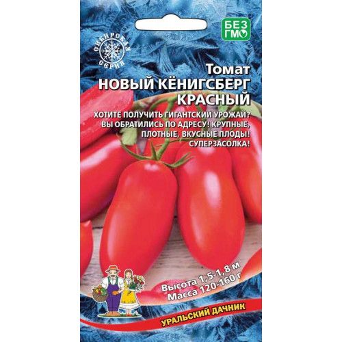 Это среднеспелый сорт сибирских селекционеров-любителей. Растение индетерминантное, высотой 1,5-1,8 м. Томат Новый Кенигсберг Красный очень обильный, растение буквально усыпано плодами. Плоды красные, удлиненно-перцевидной формы, массой до 300 г, ровные, плотные, вкусные.