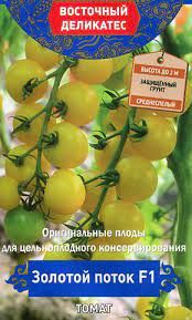 Золотой поток относится к ультраскороспелым сортам. Первые зрелые плоды появляются уже через 86 дней после появления всходов. Некрупные помидорки собраны в кисти по 6-8 штук, созревают дружно.