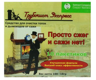 «Трубочист Экспресс» средство очистки от сажи, копоти и креозота дымоходов и внутренних поверхностей всех видов печей, топок, теплообменников и каминов, работающих на твердом топливе