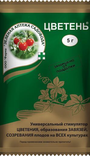Универсальный стимулятор цветения и плодообразования Цветень, 1 грКристаллический порошок, 0,9 г/кг натриевых солей гиббереллиновых кислот+удобрение с набором питательных элементовИзготовитель препарата Фирма "Зеленая Аптека Садовода"Цветень- один для всех культуробеспечивает цветение и плодоношение даже при неблагоприятных условияхувеличивает ранний и общий урожай до 30 %удобно - все культуры можно обработать одновременно, сроки совпадают.