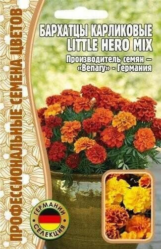 Бархатцы Карликовые Litle hero - супер-компактные (высота 15 см), обильно цветущие бархатцы с яркими соцветиями станут великолепным украшением в вашем салу.Цветут обильно и продолжительно, с июня до заморозков. Сохраняют свою декоративность в течение всего лета.