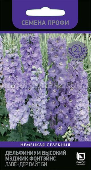 Цветы Дельфиниум Мэджик Фонтэйнс Лавандер Вайт Би (Поиск)