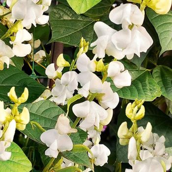 Быстрорастущая лиана добавит тропических нот дачному пространству! В середине лета на фоне мозаики из зелёных сердцевидных листьев массово распускаются вертикальные кисти белых соцветий. Каждый цветок живет 3 дня, цветочная кисть – до 20 дней! Растение подходит для вертикального озеленения и контейнерного выращивания. В конце лета созревают плоские зелёные бобы 5-10 см в длину.