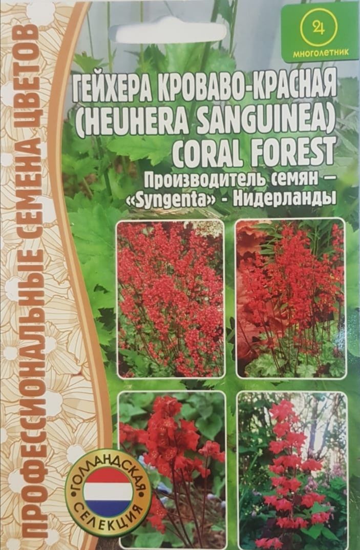 Гейхера Coral forest кроваво-красная - это декоративный травянистый многолетник, листья которого собраны в розетку, высотой около 30 см. Кустарник имеет длинные, изящные цветоносы с яркими пурпурными цветами. Крупные, с опушением, листья необычайно эффектны и декоративны, украшают сад с ранней весны до поздней осени. Цветет растение довольно продолжительно – почти все лето, мелкими, собранными в метельчатые соцветия, цветами, расположенными на высоких цветоносах. Широко применяется в озеленении не только садовых участков, но и городских клумб ландшафтными дизайнерами. Крупные, эффектные листья культуры удивляют своим многообразием расцветок, гармонично сочетаясь между собой и другими растениями. Однако гейхера кроваво-красная – это один из самых привлекательных, ярких видов, который, благодаря расцветке, может полностью преобразить садовый дизайн и внести в него пикантную, насыщенную карминным тоном, нотку.