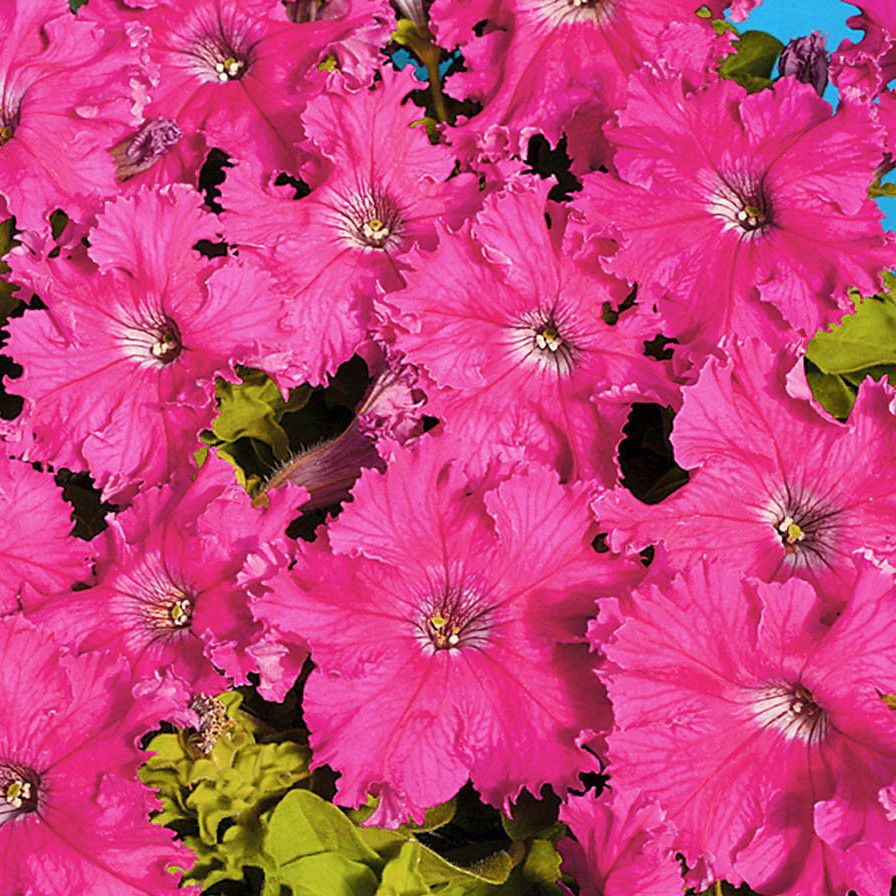Притягательная гибридная серия бахромчатых петуний для искустного оформления балконов, садовых ваз, создания акцентных групп в цветниках и низкорослых бордюрах. Растение образует шаровидный куст высотой 40 см с аккуратными листочками. Крупные (8-10 см), нежно-розовые цветы по краю украшают элегантные волнистые «рюши». Цветет с мая по сентябрь.