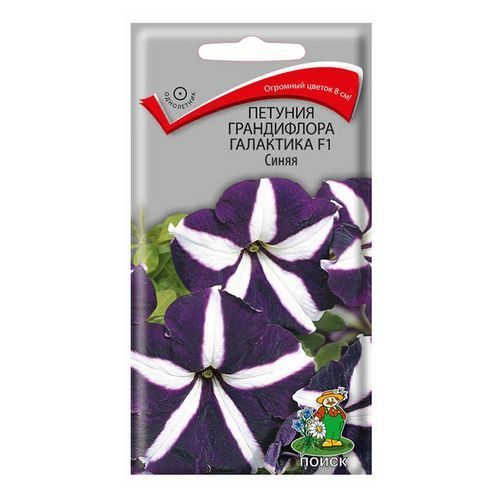 Расцветка цветов данного сорта может варьироваться от насыщенного сине-фиолетового с белыми полосками до ярко-синего. Белые полосы на лепестках образуют фигуру, очень напоминающую звезду. Сами цветы крупные, в диаметре достигаю 8 см. Форма воронковидная. Стебель мощный и подвижный. Листья мелкие. Растение представляет собой куст высотой порядка 35 см. Из-за своей необычной окраски этот сорт петуний очень часто используют для украшения клумб и бордюр