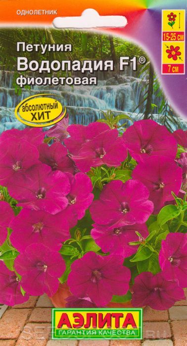 Абсолютный хит! Серия многоцветковых петуний каскадного типа, которая отличается совершенно новой полуампельной формой. Уникальность этих гибридов в том, что новые цветоносные побеги образуются без прищипки в пазухах листьев в середине куста, не оставляя пустот. Растения формируют пышные кустики, высотой 15-25 см. Поникающие побеги длиной до 70 см полностью усыпаны яркими насыщенными цветками диаметром 7 см и спускаются восхитительным водопадом. Гибриды устойчивы к повышенным температурам и неблагоприятным погодным условиям. Петунии Водопадия F1® наилучшим образом подходят для подвесных кашпо и корзин.