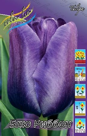 Тюльпан Blue Ribbon относится к группе Триумф. Высота растения до 50 см. Цветок бокаловидный, крупный. Окраска цветка: сиренево-фиолетовая. Высота бокала до 10 см. Посадка - август, сентябрь, октябрь. Глубина посадки зависит от размера луковицы и составляет в среднем 10 - 15 см. Минимальное расстояние между луковицами должно вдвое превышать их диаметр. Для этого сорта характерны ранние сроки цветения - апрель - май. Тюльпан Блю Риббон универсален, используется для выгонки, для украшения парков и садов. Долго стоит в срезке. Триумф-тюльпаны - для тюльпанов этого класса характерны крупные бокаловидные цветки, довольно высокие цветоносы (40-70см) и хороший коэффициент размножения. Окраска цветов у тюльпанов этого класса самая разнообразная: от чисто-белой до темно-фиолетовой. Цветут Триумф-тюльпаны в конце апреля - начале мая, довольно продолжительное время и хорошо сохраняют форму бокала. Применяют тюльпаны данного класса довольно широко: на срезку, для оформления садов и парков, для выгонки в средние и поздние сроки. В настоящее время это самый многочисленный класс тюльпанов.