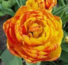 Тюльпан Дабл Бьюти оф Апельдорн (махровый поздний) — многолетнее луковичное растение высотой 50–60 см с необычными завораживающими цветками диаметром 12–15 см. Множество желто-оранжевых лепестков образуют шикарный восхитительный бокал.