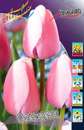 Тюльпан Дарвинов гибрид OLLIOULES имеет цветки нежно-розового цвета с более светлым розово-кремовым краем лепестков. Группа Дарвиновы гибриды — это высокие тюльпаны ( высотой 60-75 см ) с крупными 10 см и даже более цветками, ярко окрашенными, бокаловидной формы с широким донцем прямоугольной формы. Во время цветения цветки широко раскрываются, показывая темную серединку. Цветоносы крепкие, сильные, листья насыщенно зеленого цвета. Цветки преимущественно красных и оранжевых оттенков, у многих сортов двухцветные. Относительно молодая группа, выделена в 1960-х годах. Эта группа тюльпанов устойчива к вирусу пестролепестности. Очень популярные тюльпаны для выращивания на срезку и для городского озеленения. Прекрасно подходят для выращивания в саду, в том числе и в полутени, на клумбах и в пейзажных посадках.