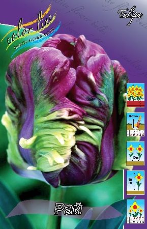 Тюльпан Rai попугайный- относится к группе весенних луковичных цветов. Бокал ярко-розово-фиолетовый, с языками желто-зеленого пламени .Высота тюльпана – 40-50 см, диаметр цветка – 12-15 см. Сроки цветения – май.