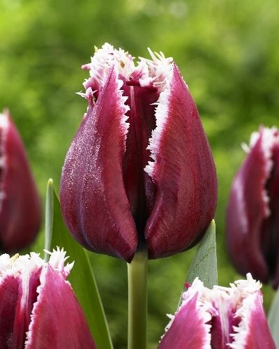 Тюльпан бахромчатый Сан Пабло – это красивейший луковичный многолетник с темно-бургундовыми лепестками, украшенными по краю тонкой снежно-розовой игольчатой бахромой. Сорт-шедевр! Расцветают удивительные цветы весной, при благоприятных погодных условиях любоваться изящным тюльпаном можно с середины апреля по май. Высота стебля тюльпана достигает около 40-50 см, сорт прекрасно подходит для выращивания в цветниках и на срезку. Особенности посадки тюльпана бахромчатого Сан Пабло Как и все луковичные культуры весеннего цветения, сорт тюльпана Сан Пабло высаживают в открытый грунт осенью. Глубина посадки зависит от высоты луковицы, в среднем составляет около 15 см. Луковицы можно высаживать в общую траншею или отдельные лунки. Посадочные работы необходимо завершить за 3-4 недели до наступления заморозков. Источник: https://abekker.ru/product/tulpan-san-pablo