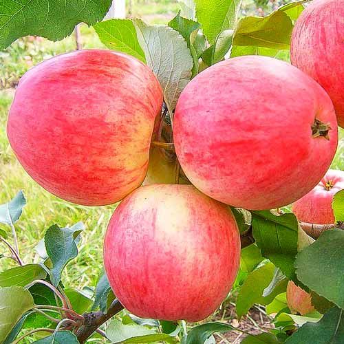 НОВИНКА!!!!! Саженцы с упакованной корневой системой и красочной этикеткой. Получен в Канаде. Зимостойкий, скороплодный, высокоурожайный, летний (до 30 дней), неустойчивый к парше сорт. Дерево средней величины с раскидистой кроной. Плоды 110 г, округло-конические, зеленовато-желтые, с оранжево-красными полосами. Мякоть белоснежная, ароматная, очень хорошего вкуса.