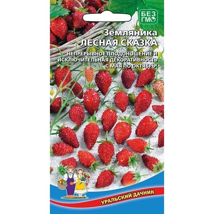Земляника Лесная сказка – высокоурожайный сорт ремонтантной, альпийской земляники. Ягоды яркокрасные, крупные, очень сладкие и насыщенно ароматные. На взрослом кусте, при правильном уходе, за сезон созревает до 1000 ягод.